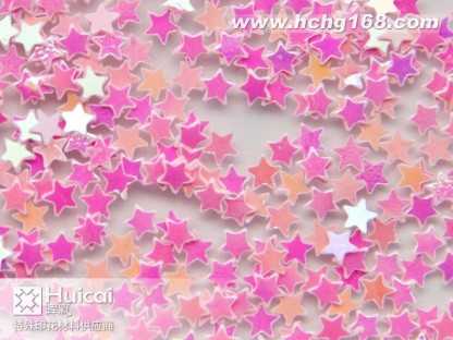 金蔥粉:又名閃光片。包括鋁質(zhì)金蔥粉,聚酯金蔥粉,幻彩粉,鐳射金蔥粉等。有鋁質(zhì),PET,PVC材質(zhì)。大小規(guī)格(size)由1/256(0、1mm)至1/8(3、0mm)。形狀有六角形,四角形,長(zhǎng)條針形和不規(guī)則形狀,并有多種顏色可供選擇。各種材質(zhì)金蔥粉可不同程度承受高溫(由80*C,180*C,300*C不等) 。