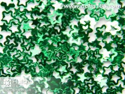金蔥粉:又名閃光片。包括鋁質(zhì)金蔥粉,聚酯金蔥粉,幻彩粉,鐳射金蔥粉等。有鋁質(zhì),PET,PVC材質(zhì)。大小規(guī)格(size)由1/256(0、1mm)至1/8(3、0mm)。形狀有六角形,四角形,長(zhǎng)條針形和不規(guī)則形狀,并有多種顏色可供選擇。各種材質(zhì)金蔥粉可不同程度承受高溫(由80*C,180*C,300*C不等) 。