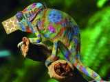 變色龍粉其變色原理為吸收特定波長(zhǎng)之紫外光源,藉由該光源之能量而產(chǎn)生顏色變化(變?yōu)樽仙?、紅色、黃色、天空蘭色),當(dāng)特定波長(zhǎng)的紫外光源不在時(shí),即回復(fù)原來的顏色。