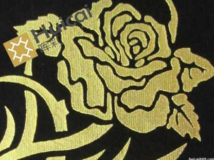 ①仿?tīng)C金/銀漿印花工藝簡(jiǎn)單,印花可一次成型。而燙金印花工藝要先印燙金漿再熱轉(zhuǎn)移燙金,工藝相對(duì)復(fù)雜。