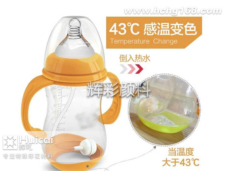 感溫奶瓶顧名思義就是可以感受溫度的變化,根據(jù)溫度的不同而產(chǎn)生不同的顏色變化,讓喂養(yǎng)更加安全。這種奶瓶在生產(chǎn)的時候主要是添加了感溫變色顏料,這種感溫變色顏料是一種微膠囊化的可逆感溫變色物質(zhì),呈圓球狀,平均直徑為2~7微米(一微米等于千分之一毫米)。其內(nèi)部是變色物質(zhì),外部是一層厚約0.2~0.5微米既不能溶解也不會融化的透明外殼,正是它保護(hù)了變色物質(zhì)免受其他化學(xué)物質(zhì)的侵蝕,從而達(dá)到變色效果。