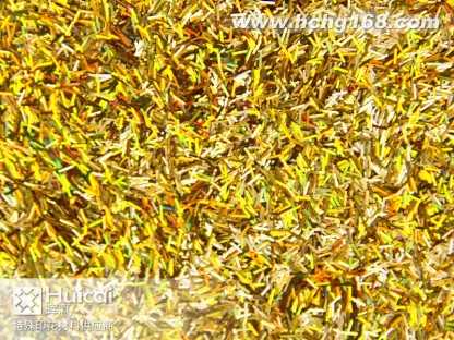 金蔥粉:又名閃光片。包括鋁質(zhì)金蔥粉,聚酯金蔥粉,幻彩粉,鐳射金蔥粉等。有鋁質(zhì),PET,PVC材質(zhì)。大小規(guī)格(size)由1/256(0、1mm)至1/8(3、0mm)。形狀有六角形,四角形,長條針形和不規(guī)則形狀,并有多種顏色可供選擇。各種材質(zhì)金蔥粉可不同程度承受高溫(由80*C,180*C,300*C不等) 。