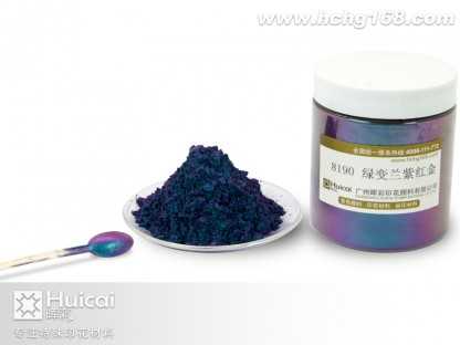 8190綠變蘭紫紅金變色龍粉其變色原理為吸收特定波長之紫外光源,藉由該光源之能量而產生顏色變化(變?yōu)樽仙?、紅色、黃色、天空蘭色),當特定波長的紫外光源不在時,即回復原來的顏色。