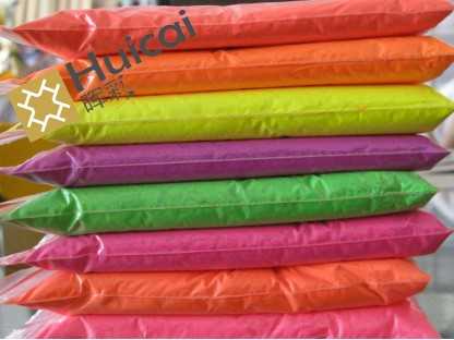 三、輝彩熒光粉主要顏色:    HB-9081熒光桃紅、HB-9082熒光大紅、HB-9083熒光桃紅、HB-9081熒光桔紅、HB-9085熒光金黃、HB-9086熒光綠、HB-9088熒光玫紅、HB-9089熒光寶藍、HB-9090熒光紫、HB-9091熒光白、HB-9193中國紅